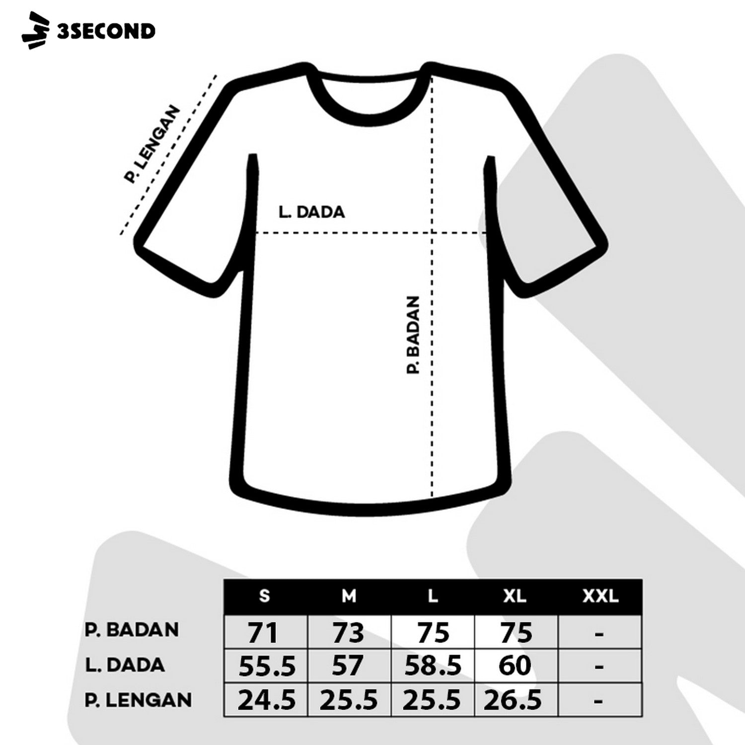 M : LEBAR DADA 57 cm, PANJANG BADAN 73 cm, PANJANG TANGAN 25.5 cm
