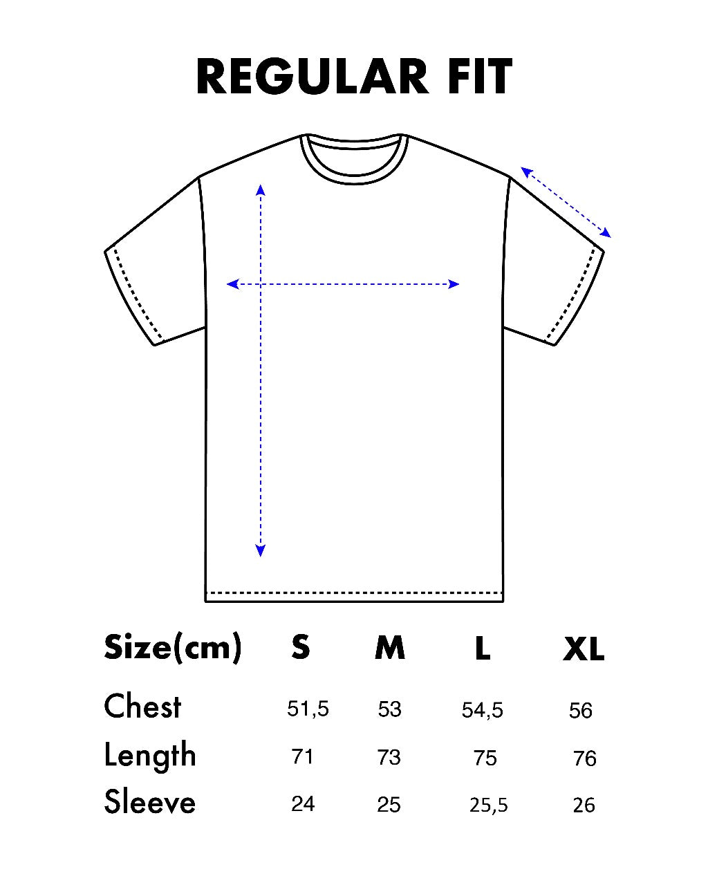 S: Lebar Dada 51.5 cm, Panjang Badan 71 cm, Panjang Tangan 24 cm